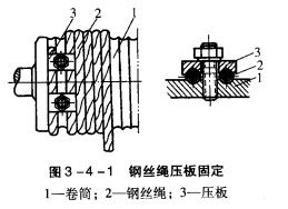 (1)卷筒上鋼絲繩尾端的固定裝置,應有防松和自緊的性能。對鋼絲繩尾端的固