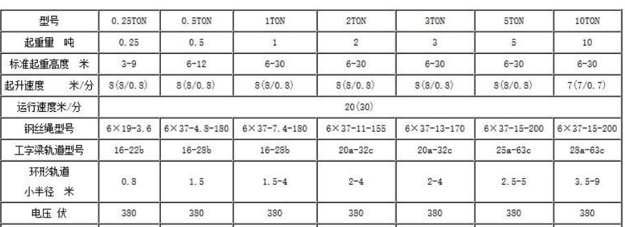 鋼絲繩電動葫蘆所對應(yīng)的工字鋼軌道范圍